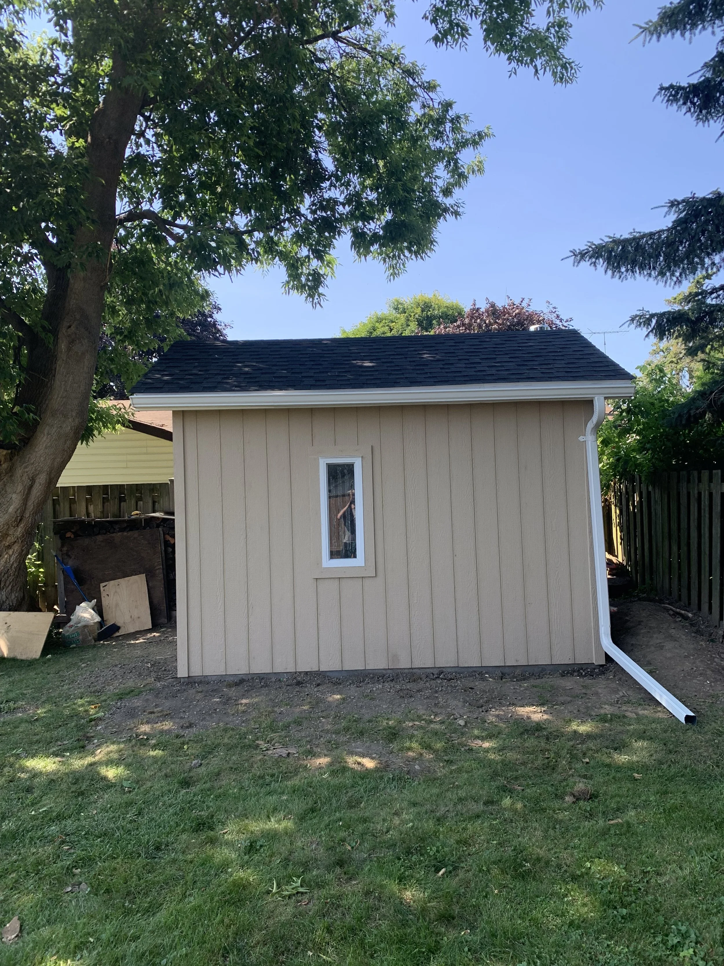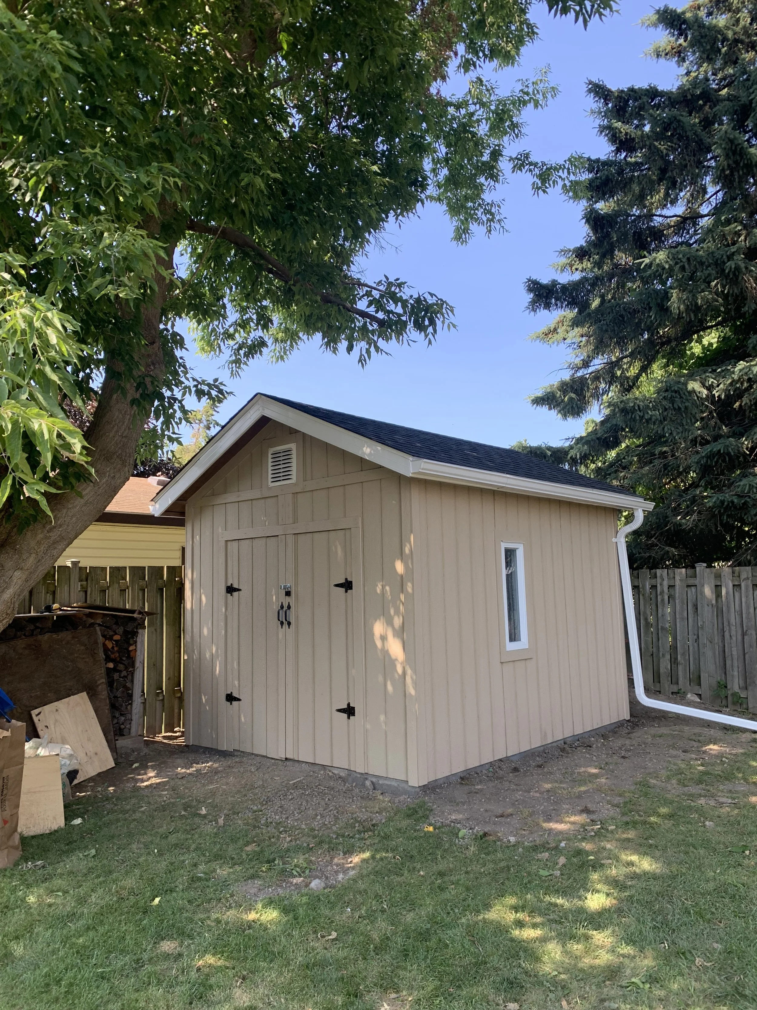 Shed renovation completed with new roof, LP Smart side panels, aluminum capping, eavestrough and downspout.