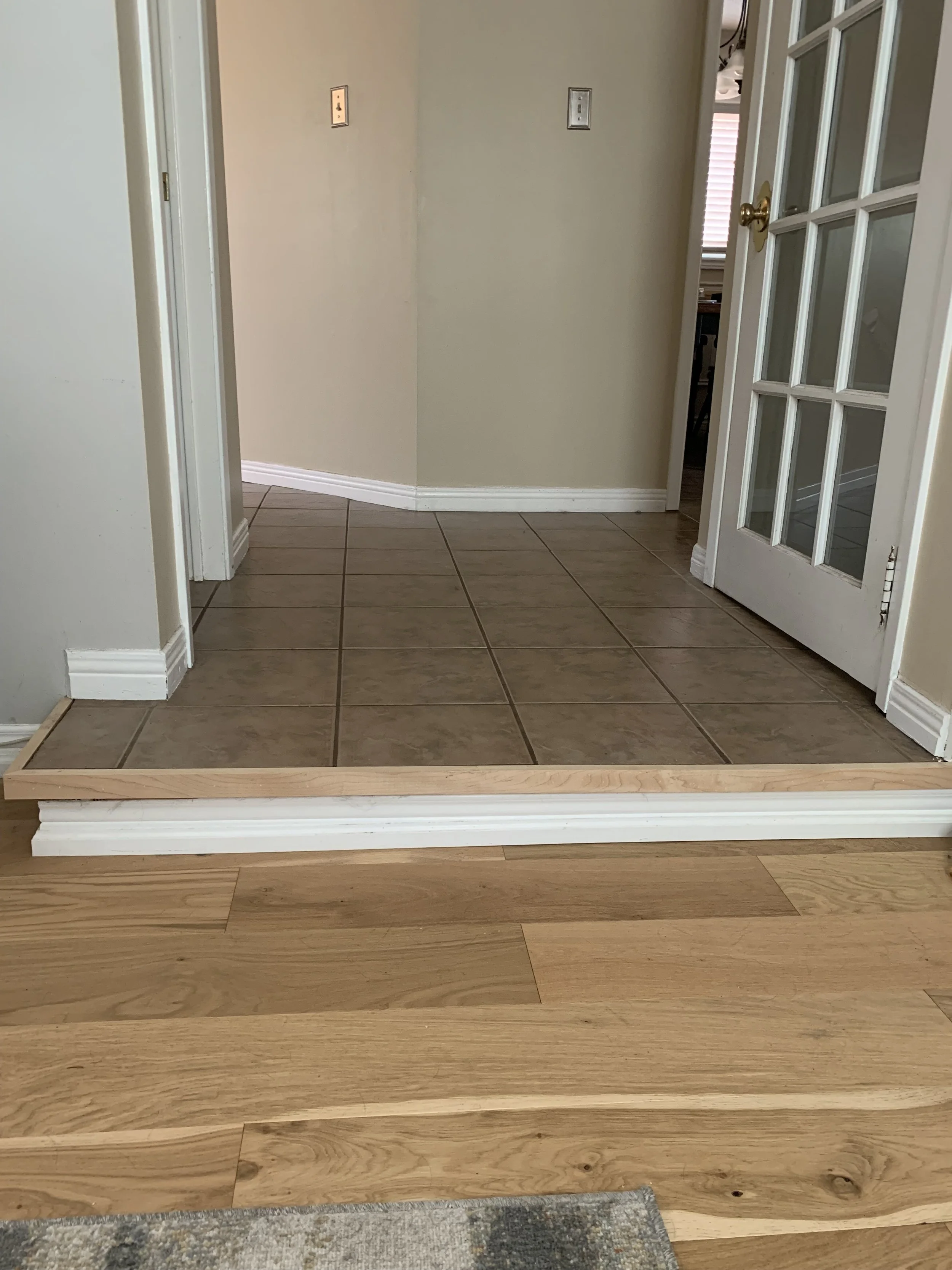 Engineered hardwood complete with natural stone hearth, new baseboard, casing and maple edging.
